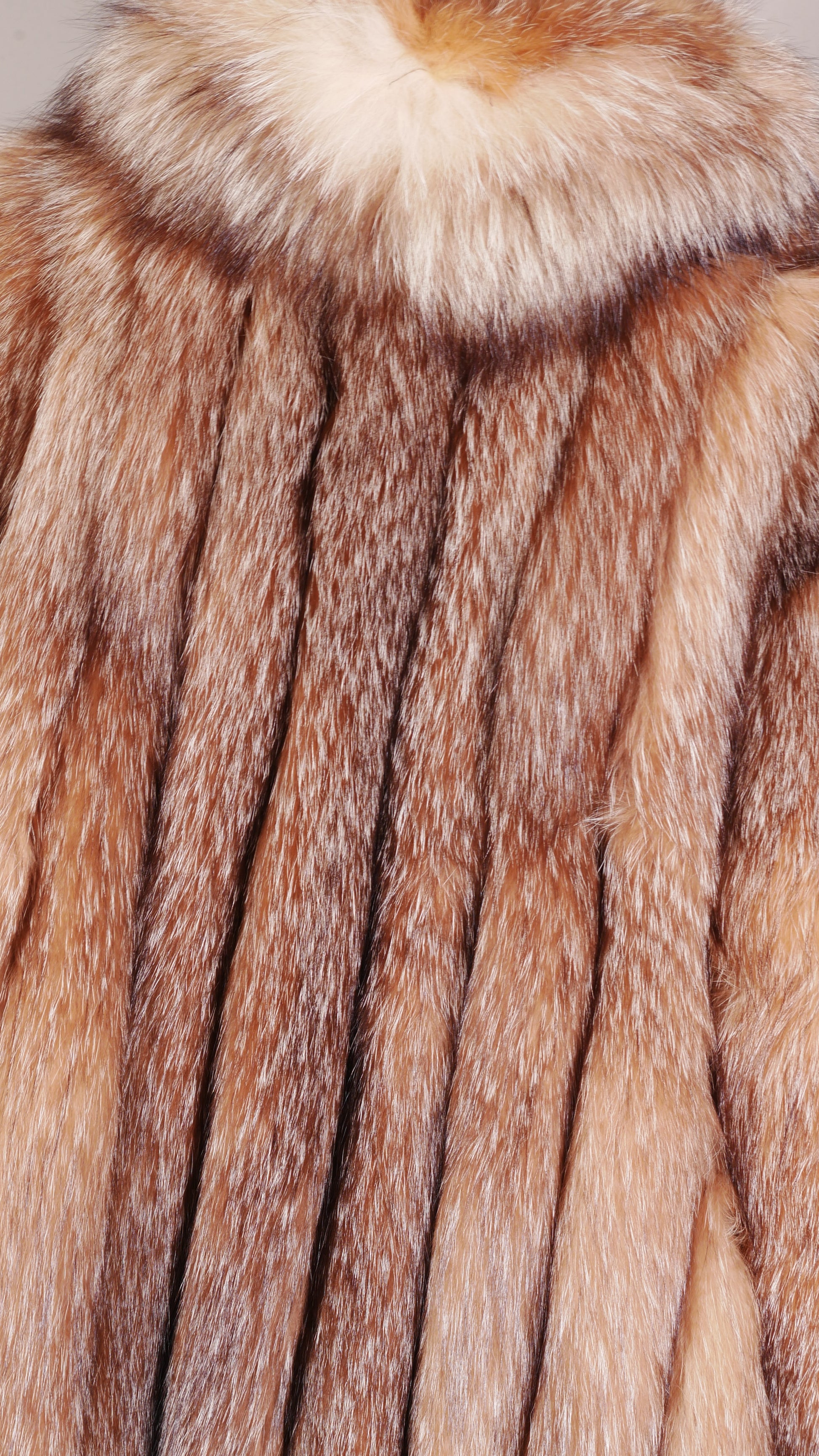 A masterpiece of natural, undyed color. This Canadian-origin stroller is crafted from 100% genuine Crystal Fox, a premium fur prized for its stunning, frosty "crystal-tipped" appearance and exceptionally dense, soft texture.