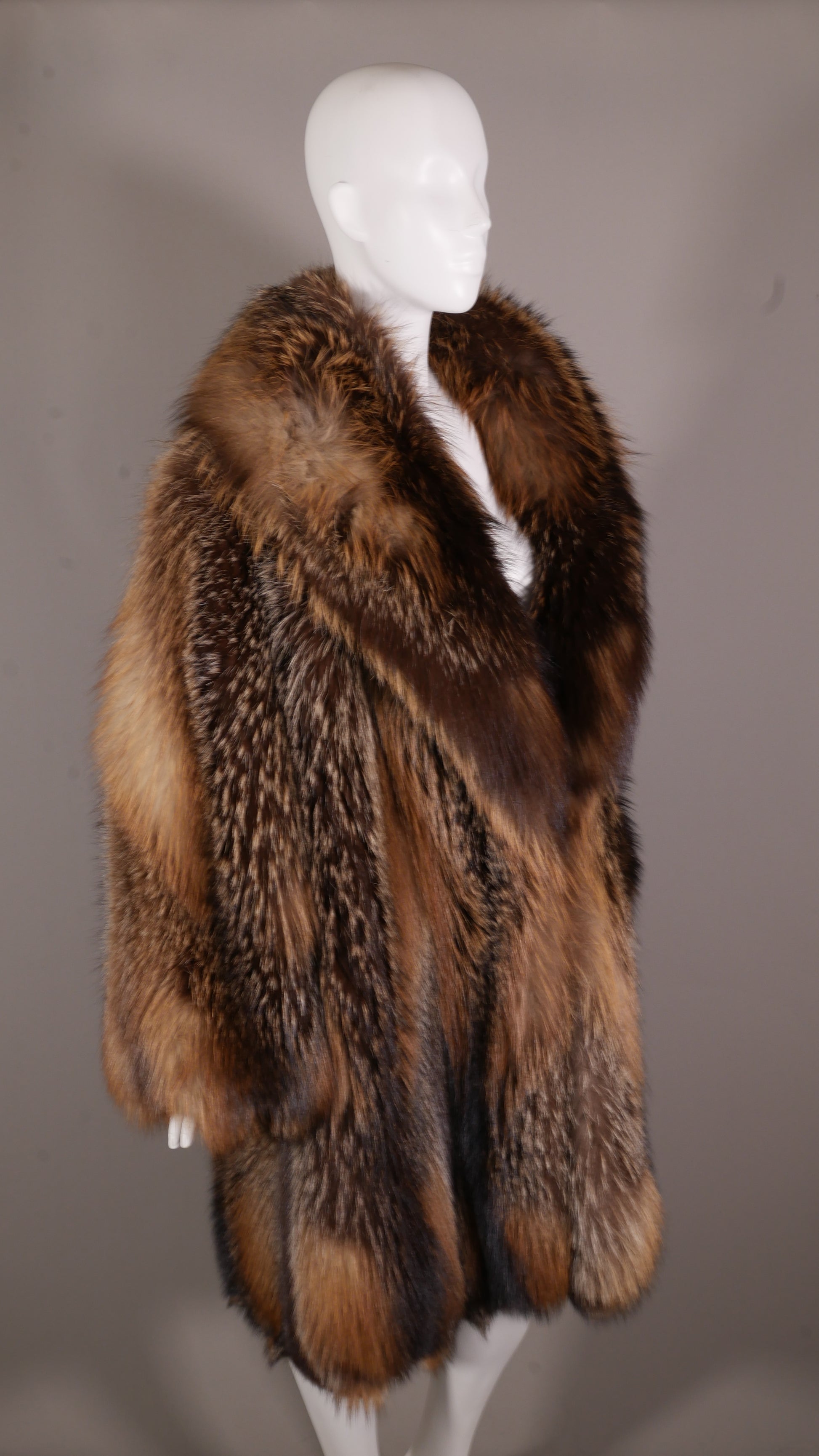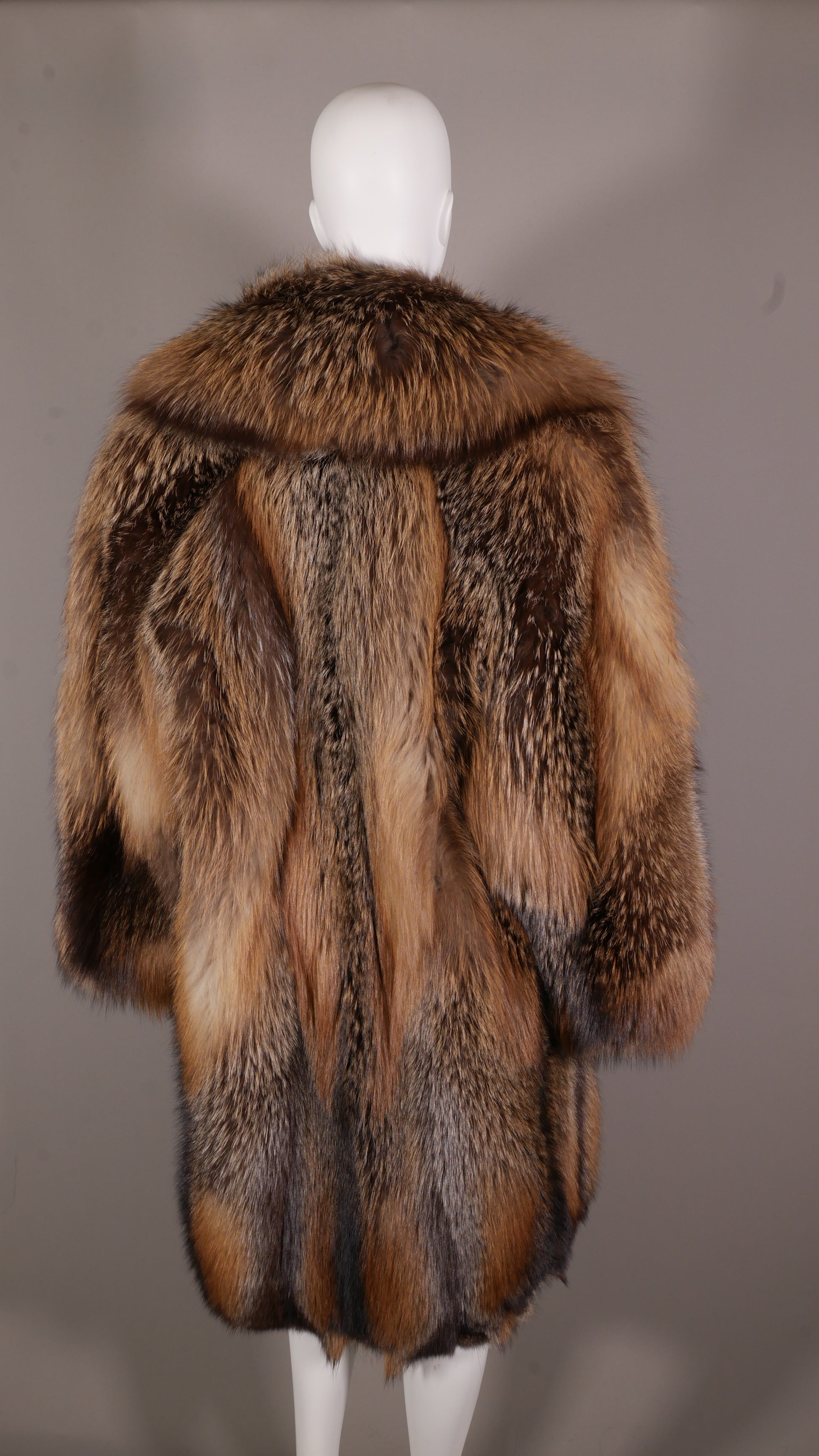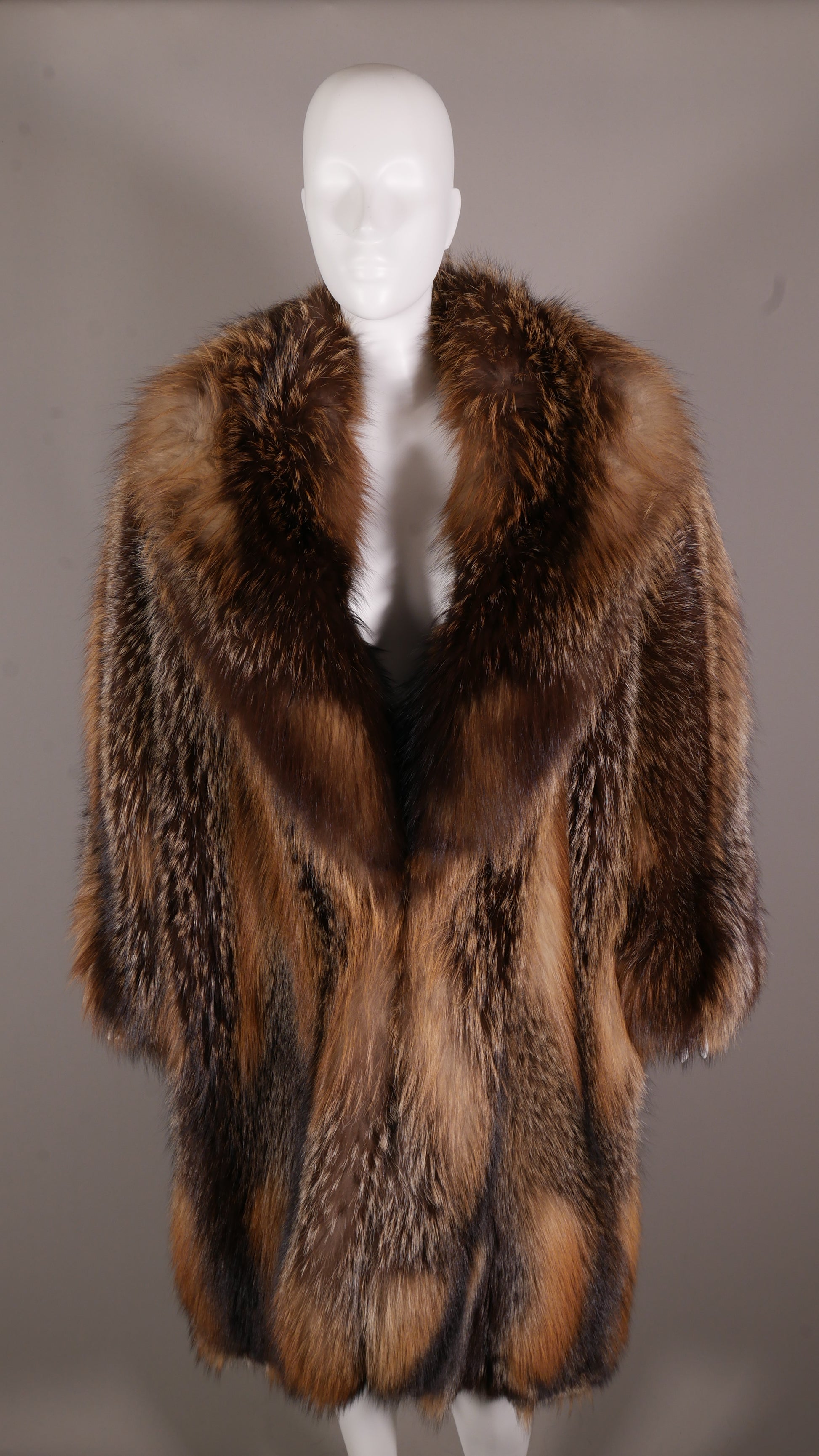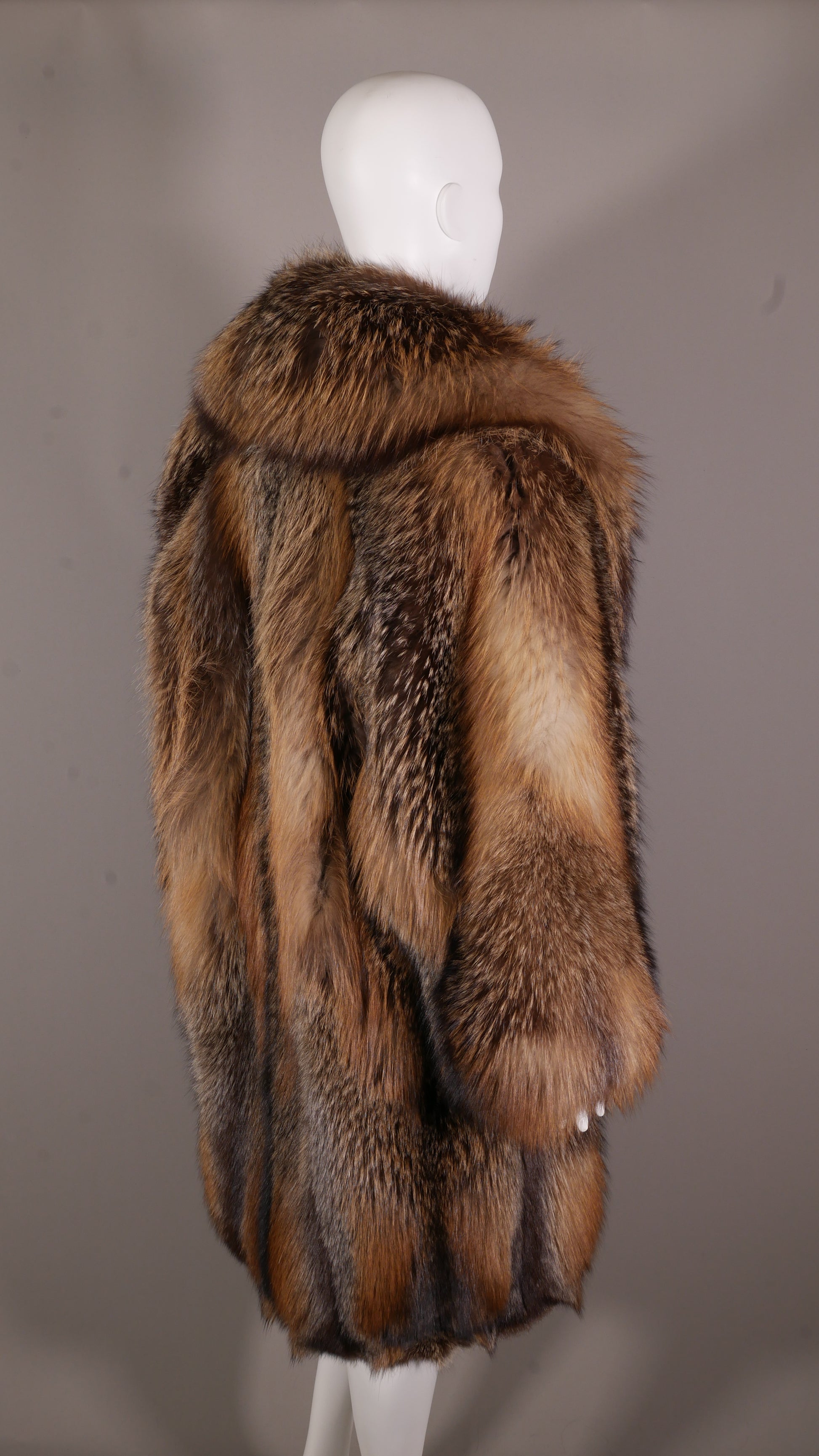 A truly premium piece, certified by Saga Furs® of Finland. This 7/8ths-length stroller is crafted from 100% genuine Cross Fox, celebrated for its "premier" natural coloration and a striking dark "cross" pattern against a lighter body. This is a definitive statement of natural, certified luxury.